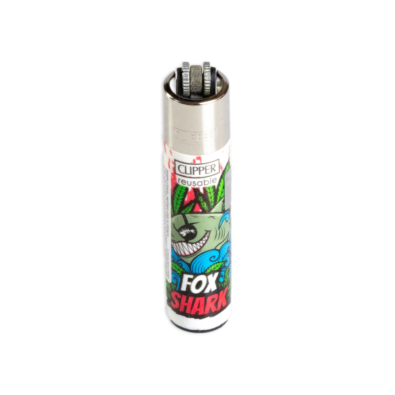O Isqueiro Clipper Grande Tubarão Weed Fox Shark apresenta estampa exclusiva inspirada no Fox Shark. Modelo original Clipper, resistente, recarregável e de fácil manutenção.