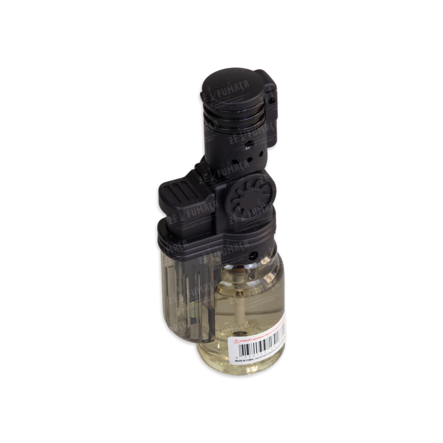 Isqueiro Maçarico Firestar Bico Móvel (1 Chama) - Preto Translúcido. Ideal para charutos, cigarros, palheiros, etc. Principais características: Sistema de ignição de ação simples, Chama de 1 Jato, Cabeça Móvel, Resistente ao Vento e Recarregável (Gás Butano).